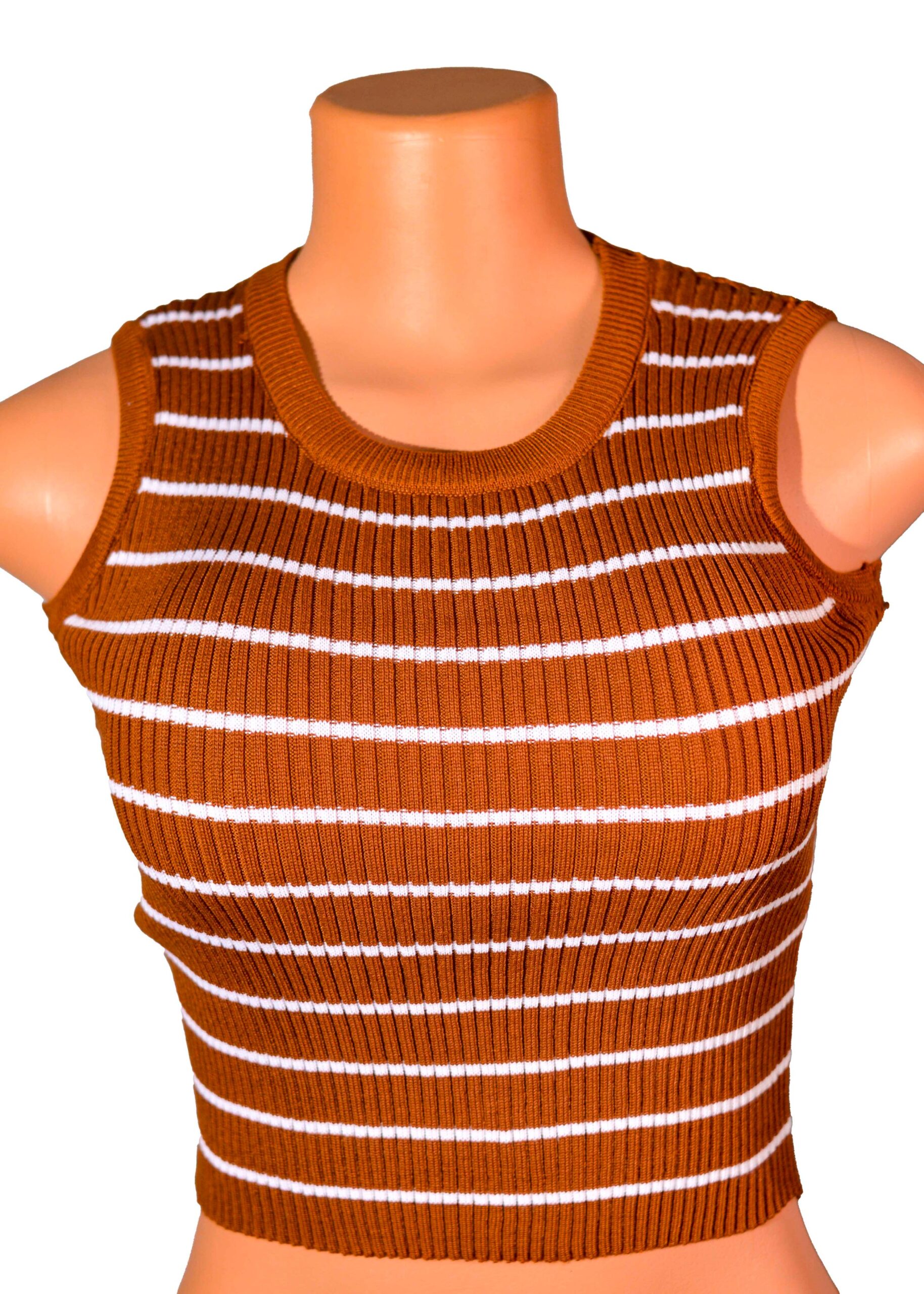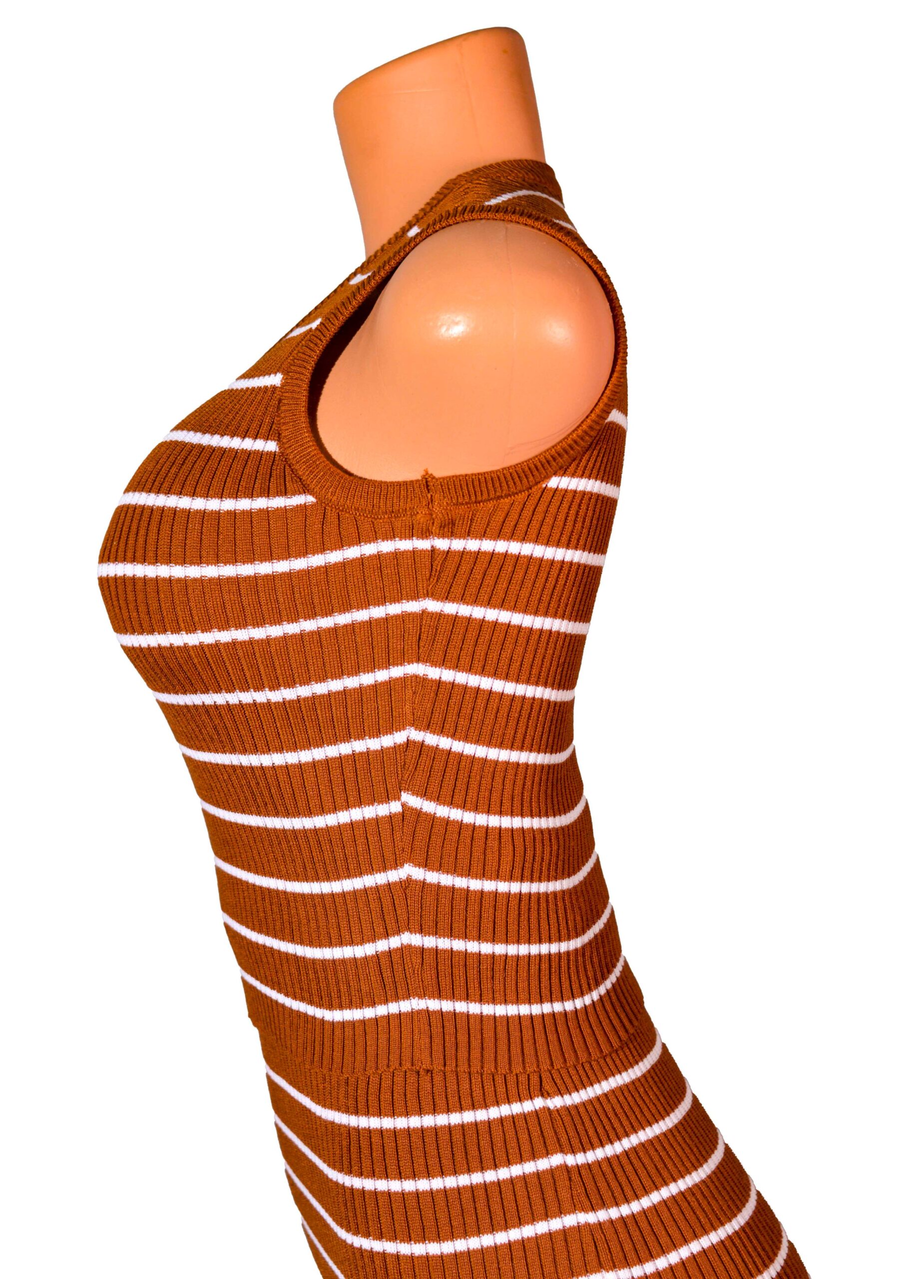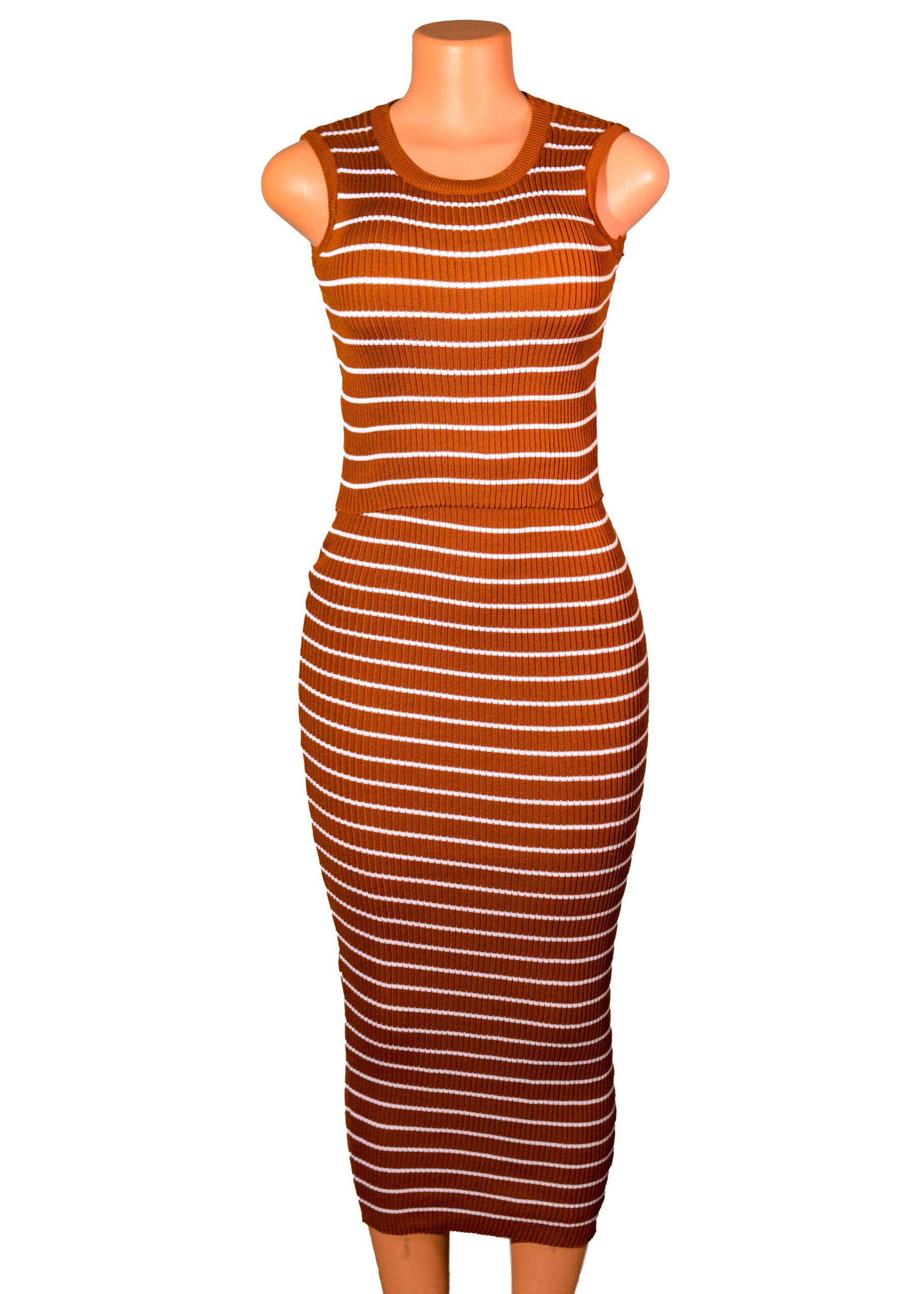 Knit Maxi Skirt With Elastic Waist and Crop Top With Stripes. Knit Material of Light Weight and Quality.